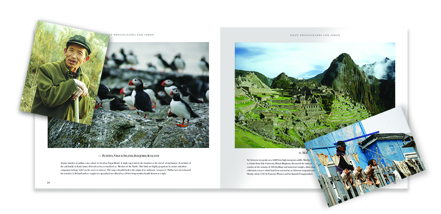 ‘Sixty Photographs for Simon’ is a collection of 60 photographs that were taken from Vincent’s worldwide travels when he worked as a lecturer aboard the expedition cruise ship the National Geographic Explorer and as an expedition leader with Across the Divide, a British-based trekking company. 25 countries are represented in a broad geographical sweep in the collection of pictures, from the Arctic to the Sahara, to the Antarctic.